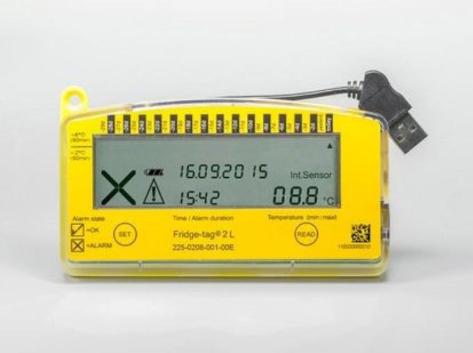 Thẻ Fridge-tag® 2 L đo nhiệt độ môi trường xung quanh. Nếu một trong hai giới hạn cảnh báo được vượt quá hoặc giảm xuống dưới, một cảnh báo sẽ được kích hoạt trên màn hình và / hoặc nghe như một tín hiệu âm thanh. Từ đó bạn sẽ có một hành động ngay lập tức và một quyết định nhanh chóng. Báo cáo PDF / A có thể được tạo ra mà không cần phần mềm bổ sung. Thẻ Fridge-tag® 3 có sẵn với một đầu dò nhiệt độ bên ngoài (đo đến -40 ° C / -40 ° F). Dữ liệu nhiệt độ thu thập được có thể dễ dàng tích hợp vào ứng dụng máy chủ dựa trên web.